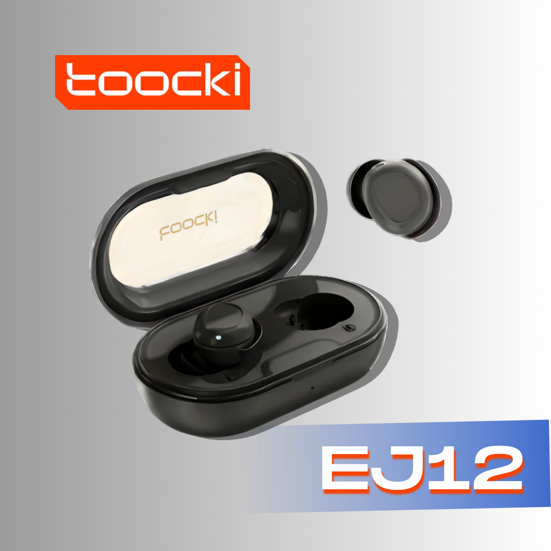Toocki EJ12 Bluetooth: sonido claro, conexión estable y batería duradera. Cómodos, livianos y con estuche de carga. Ideales para uso diario y trabajo.