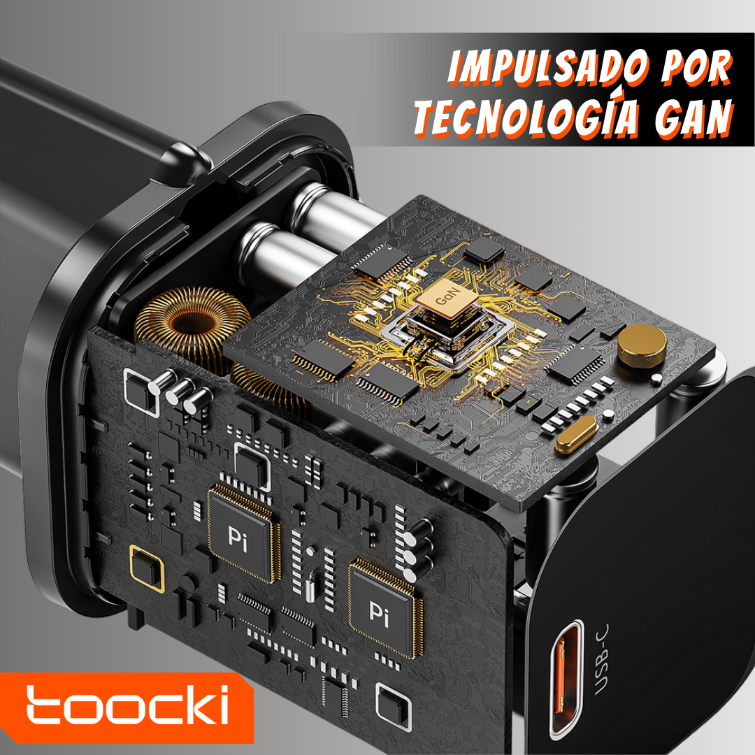 Cargador Toocki 33W GaN USB-C - USB-A - PD, QC 3.0