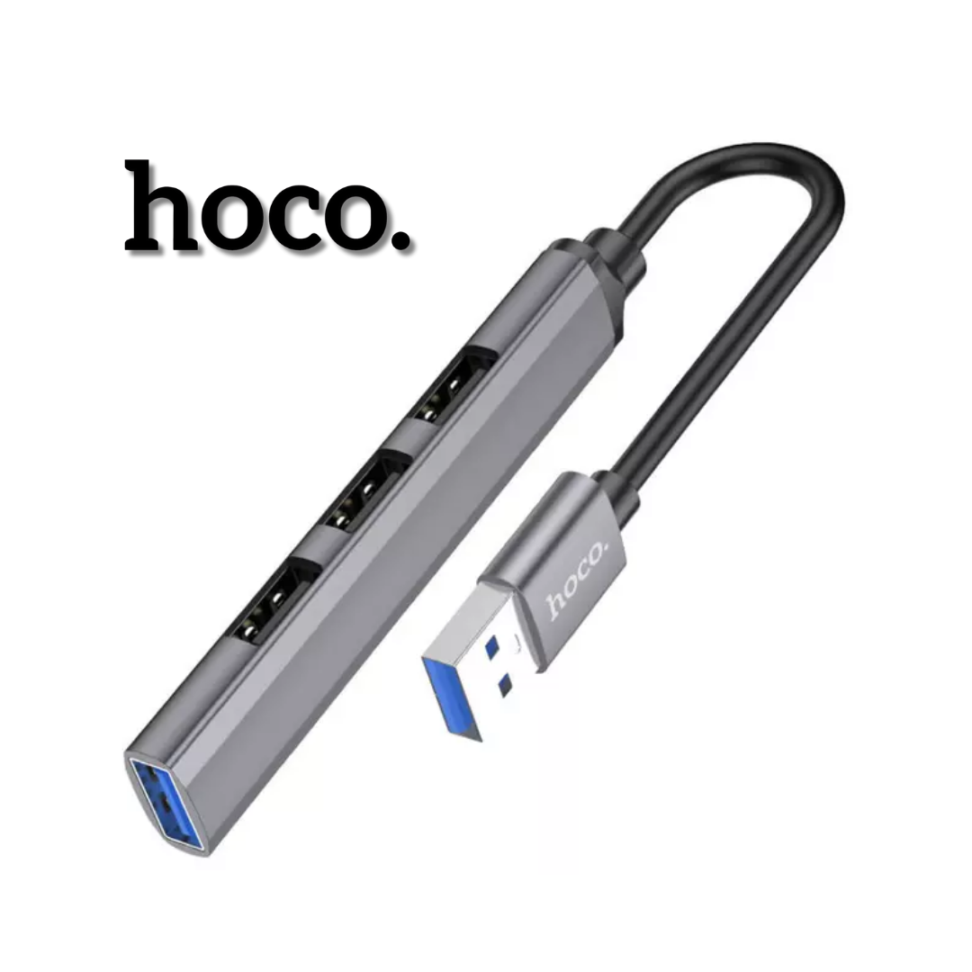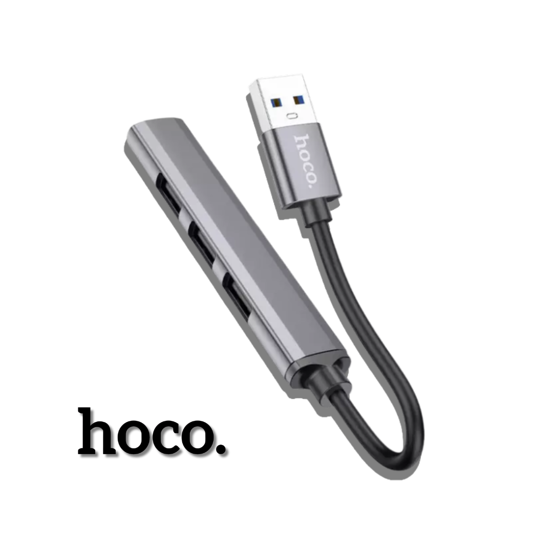 Hub Hoco HB26 4 en 1 USB-A con 1 puerto USB 3.0 y 3 USB 2.0. Ideal para PC, notebook y oficina.