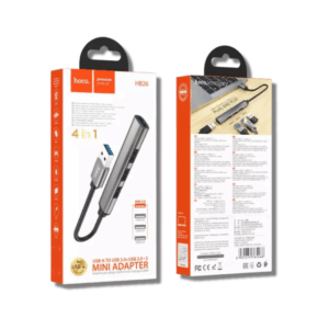 El Hub Hoco HB26 4 en 1 USB-A es la forma más simple y práctica de ampliar los puertos de tu notebook, PC o consola. Con una sola conexión USB puedes obtener 4 puertos adicionales, incluyendo 1 USB 3.0 de alta velocidad para transferencias rápidas y 3 USB 2.0 ideales para mouse, teclado, impresoras, pendrive y más.